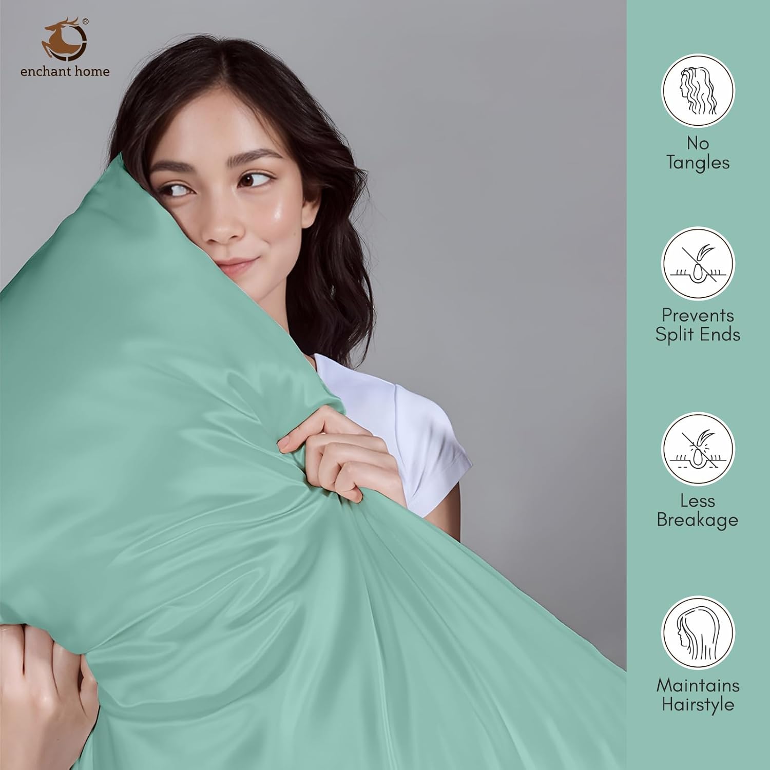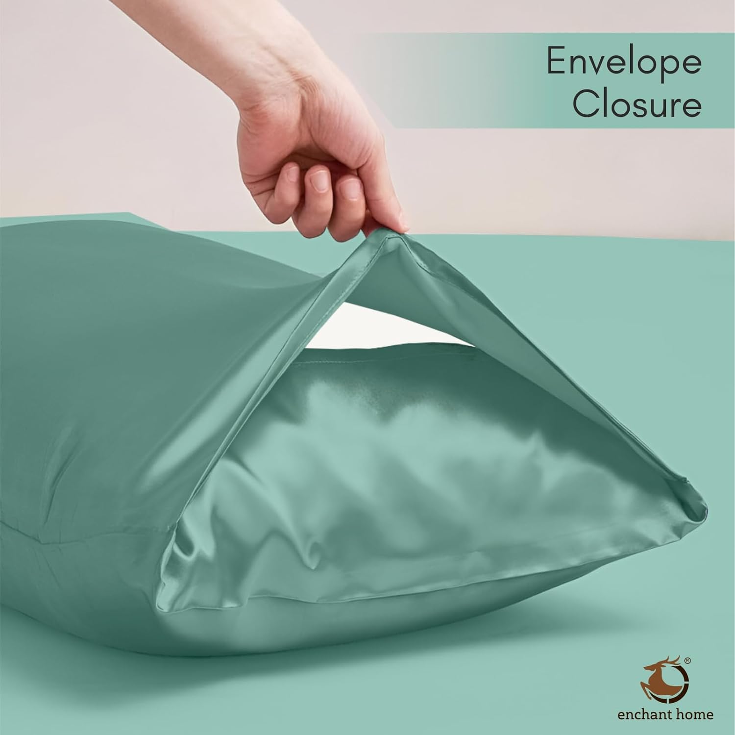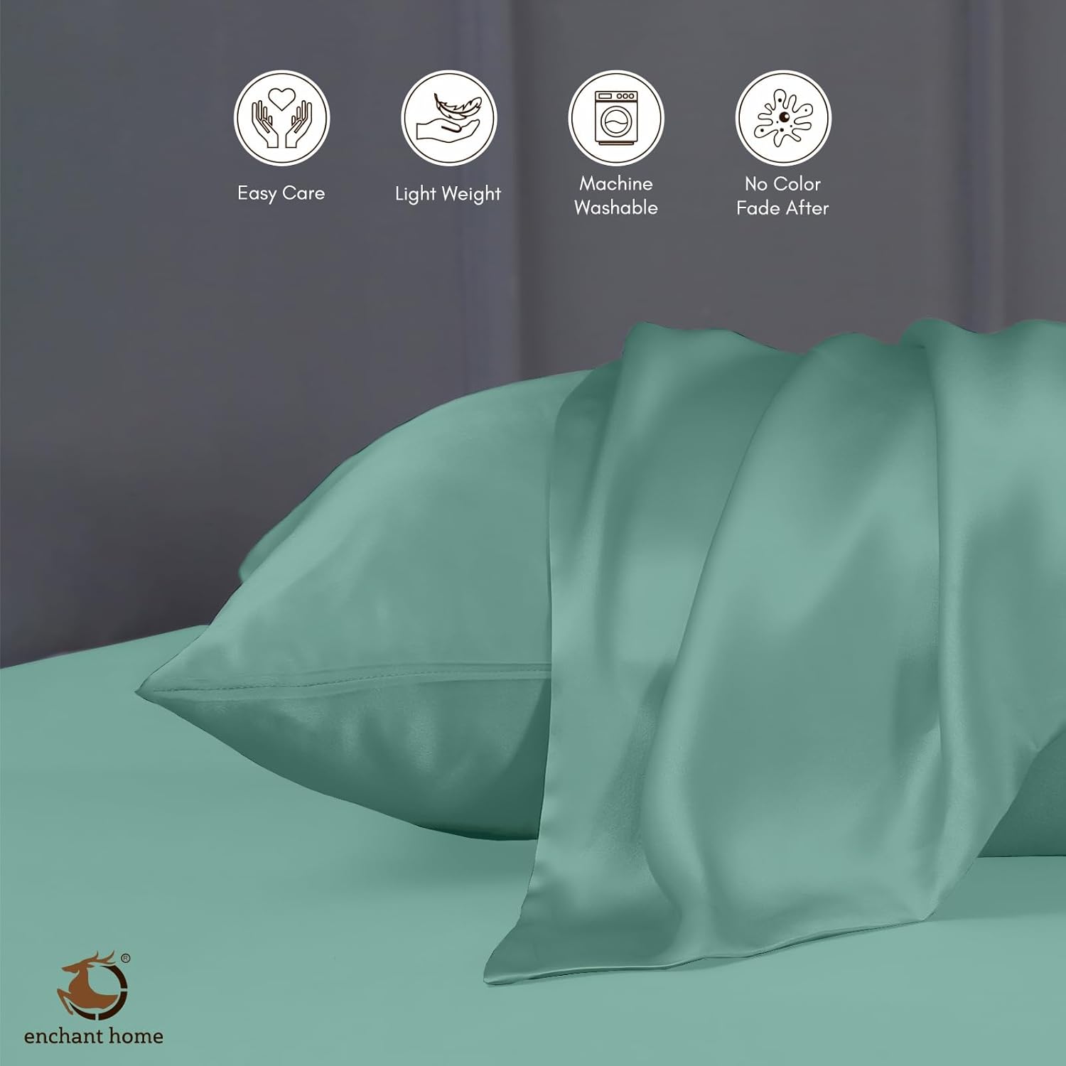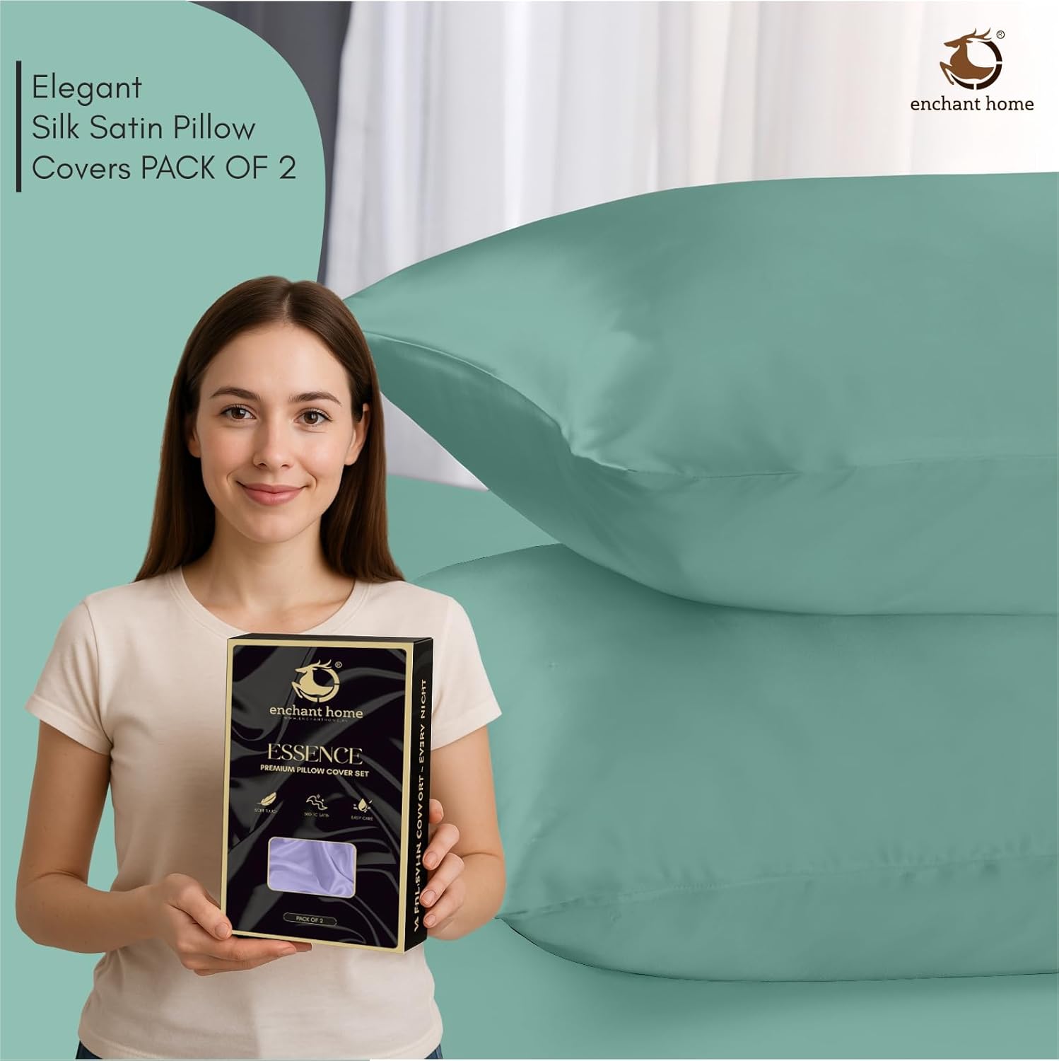 Elevate your bedroom's elegance with these luxurious pure art silk satin pillow covers from Enchant Home. The smooth, lustrous finish creates an opulent sleeping experience whilst adding a touch of sophistication to your decor. These pillow covers feature a sleek design that complements any bedroom style, from contemporary to classic. The sumptuous satin fabric offers a gentle surface for your skin and hair, helping to reduce friction during sleep. Perfect for those who appreciate both comfort and elegance, these covers slip easily onto standard pillows and maintain their refined appearance night after night. The rich texture catches light beautifully, creating subtle highlights that enhance your bedroom's ambiance. Whether you're updating your bedding collection or seeking a touch of luxury, these pillow covers seamlessly blend style with practicality.