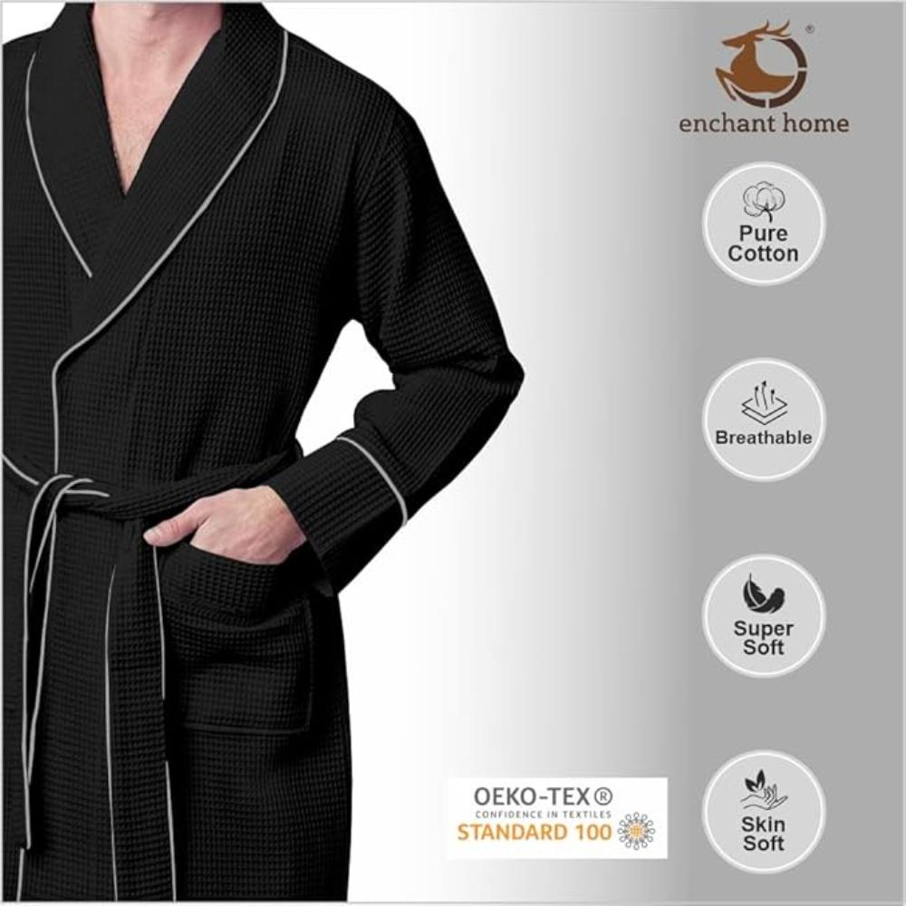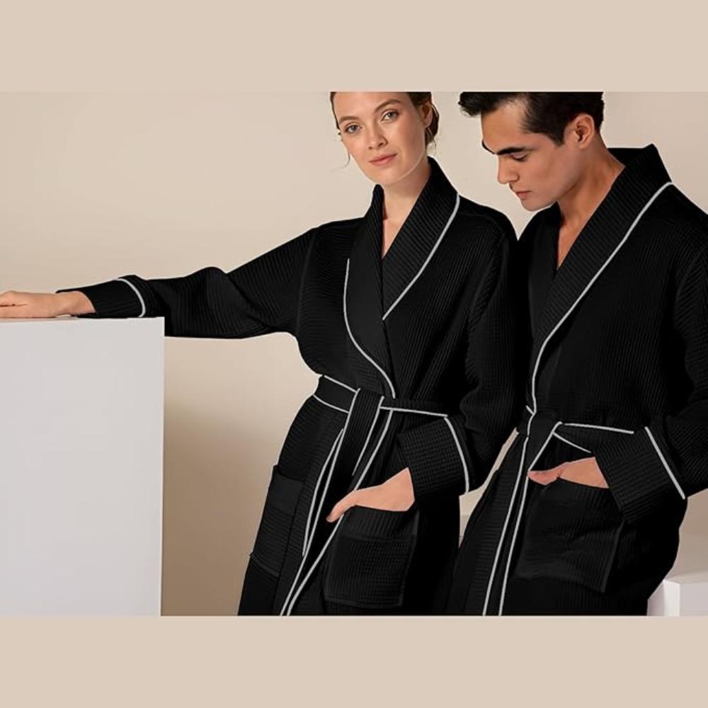 1 Unit Unisex Waffle Bathrobe With Piping (Size- Free Size)