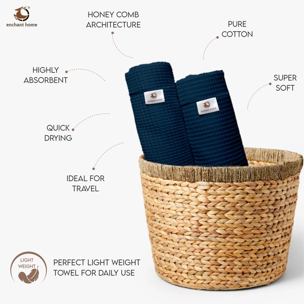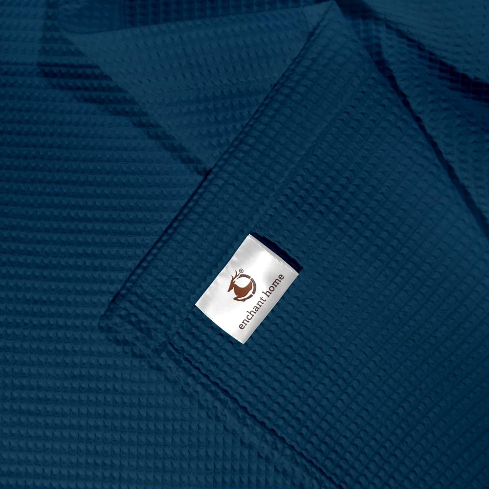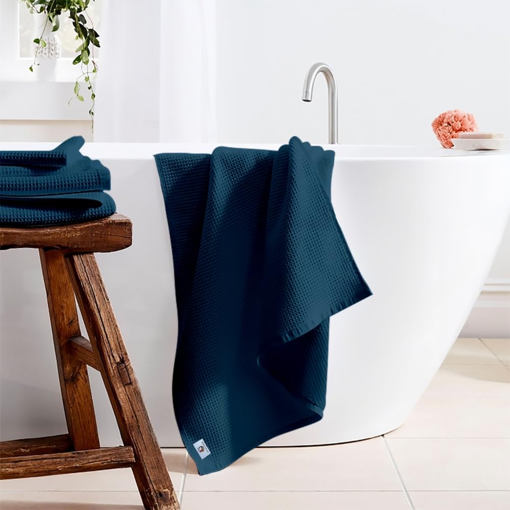 Pure Cotton Waffle Bath Towel - Navy Blue