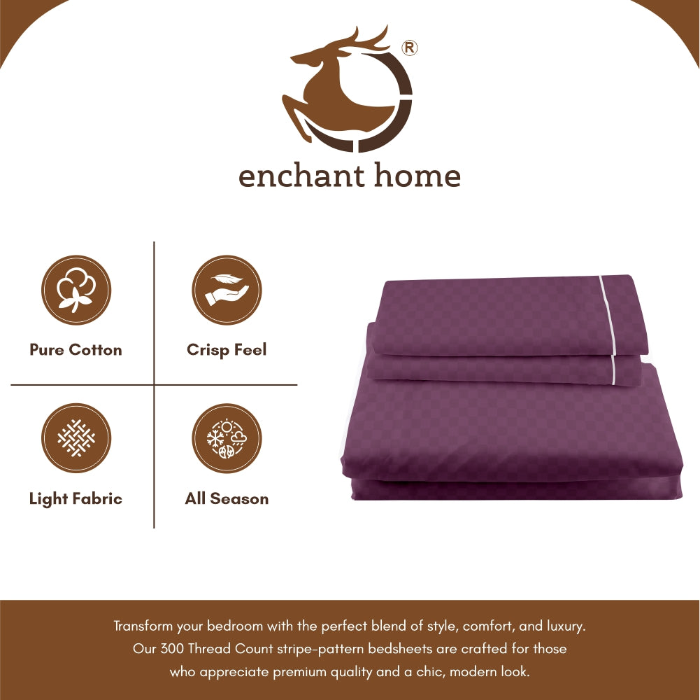 Elevate your bedroom with the Customizable 300 TC Mozziac Check Bedsheet in Wine. Designed for both style and comfort. Crafted with a 300-thread count, this bed sheet offers a soft, durable fabric that enhances sleep quality. Its customizable feature allows you to adjust dimensions to perfectly fit your mattress, while the tasteful mozziac checks pattern adds a sophisticated, modern touch to your decor. Ideal for those who value both functionality and aesthetic appeal in their bedding. Designed by Enchant Home for lasting comfort with style and customizable according to your requirements.