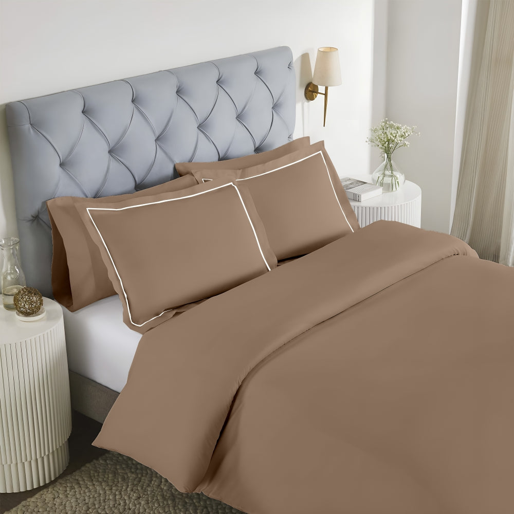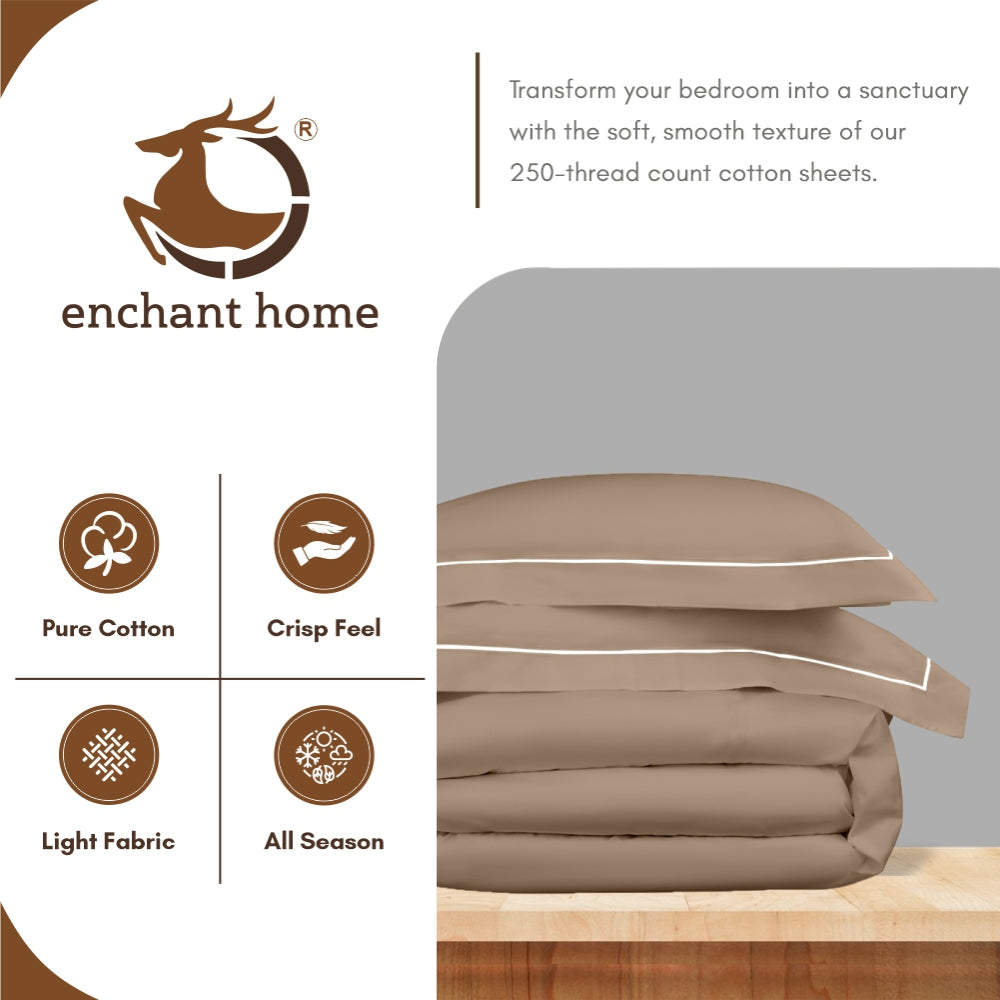 Experience luxurious comfort with the Enchant Home 250 TC Dyed Sateen Elegance Bedsheet in Beige. Made from premium sateen fabric with a 250 thread count, this king-size bedsheet combines smoothness and durability for everyday use. The included two embroidered pillow covers enhance the set’s refined appearance, adding a subtle decorative detail. Its breathable and soft texture ensures a restful sleep while maintaining an elegant look for your bedroom.