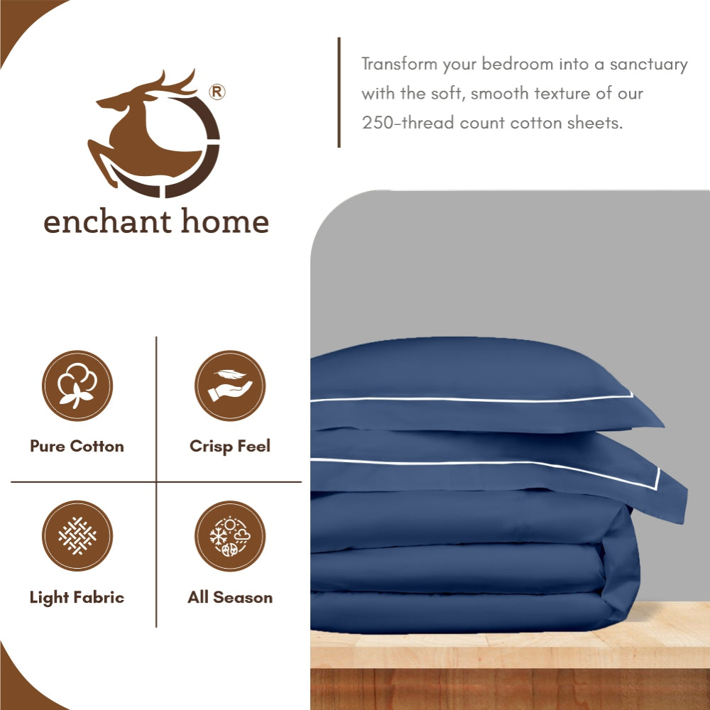 Experience luxurious comfort with the Enchant Home 250 TC Dyed Sateen Elegance Bedsheet in Med Blue. Made from premium sateen fabric with a 250-thread count, this king-size bed sheet combines smoothness and durability for everyday use. The two embroidered pillow covers enhance the set’s refined appearance, adding a subtle decorative detail. Its breathable and soft texture ensures a restful sleep while maintaining an elegant look for your bedroom.