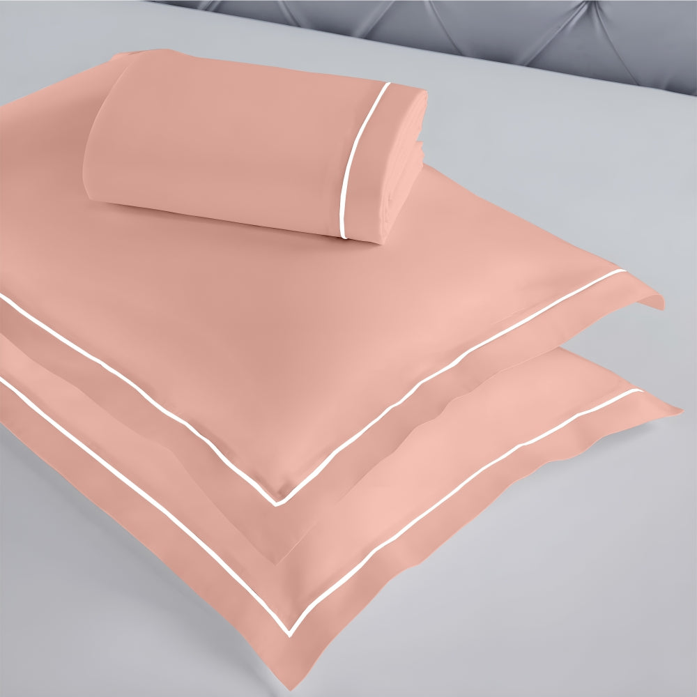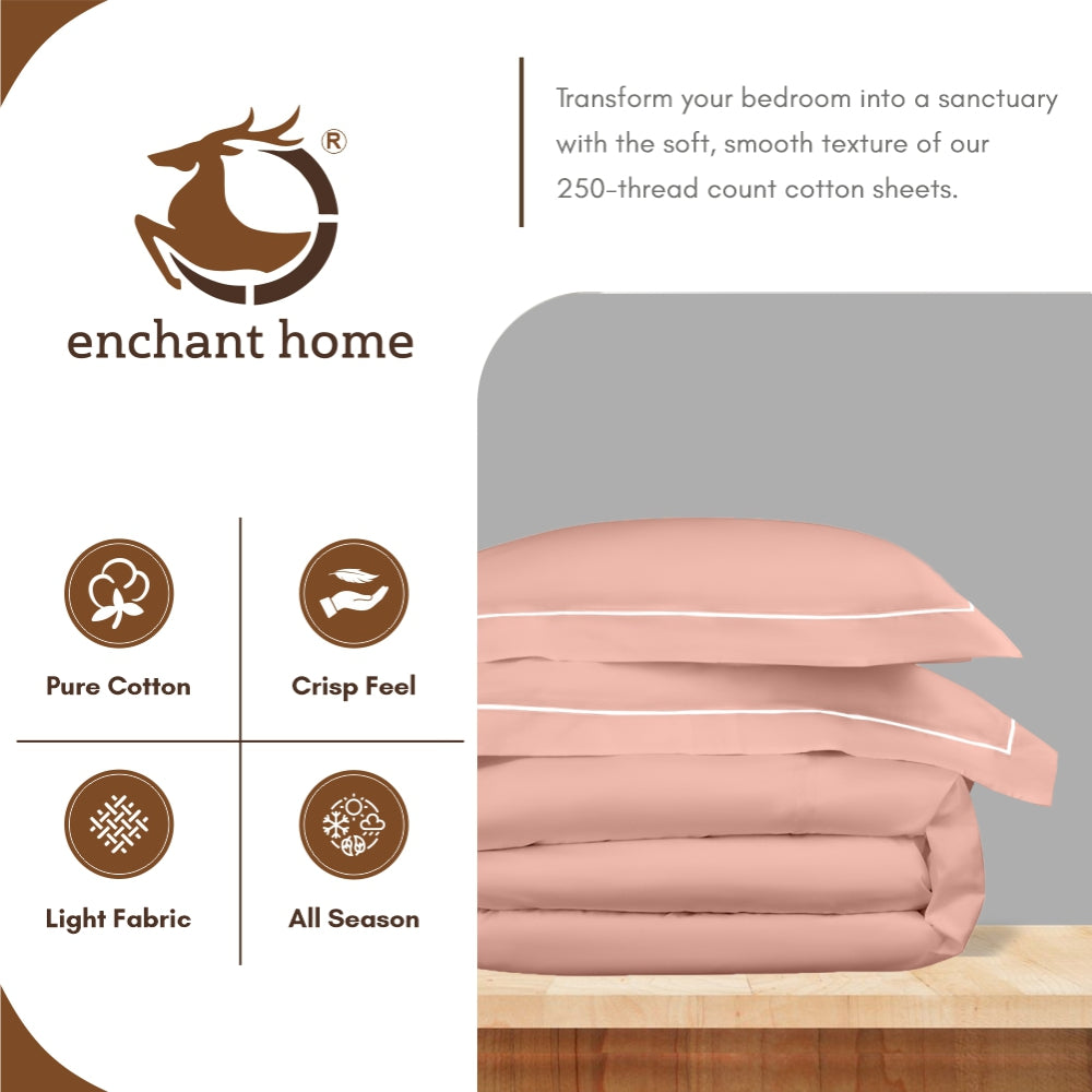 Experience luxurious comfort with the Enchant Home 250 TC Dyed Sateen Elegance Bedsheet in Peach. Made from premium sateen fabric with a 250-thread count, this king-size bed sheet combines smoothness and durability for everyday use. The two embroidered pillow covers enhance the set’s refined appearance, adding a subtle decorative detail. Its breathable and soft texture ensures a restful sleep while maintaining an elegant look for your bedroom.