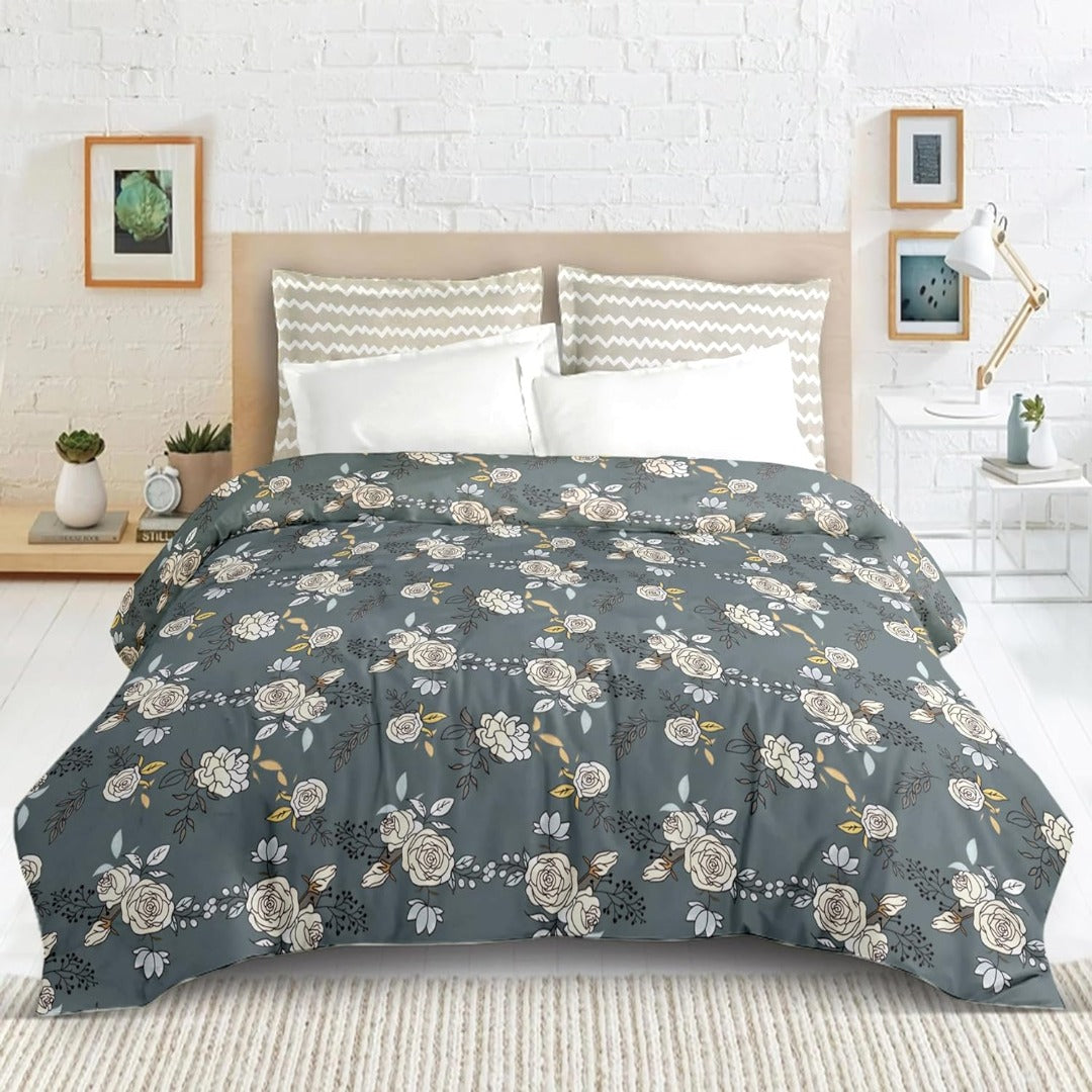 Blossom Glace Cotton Printed Double Bedsheet - Grey