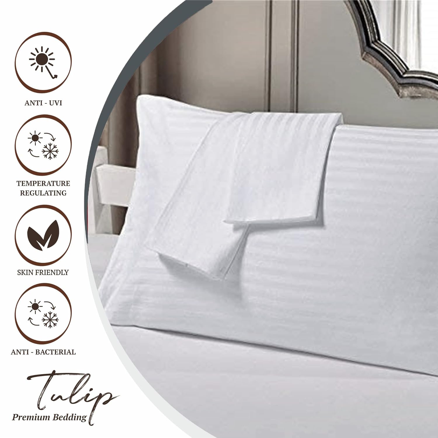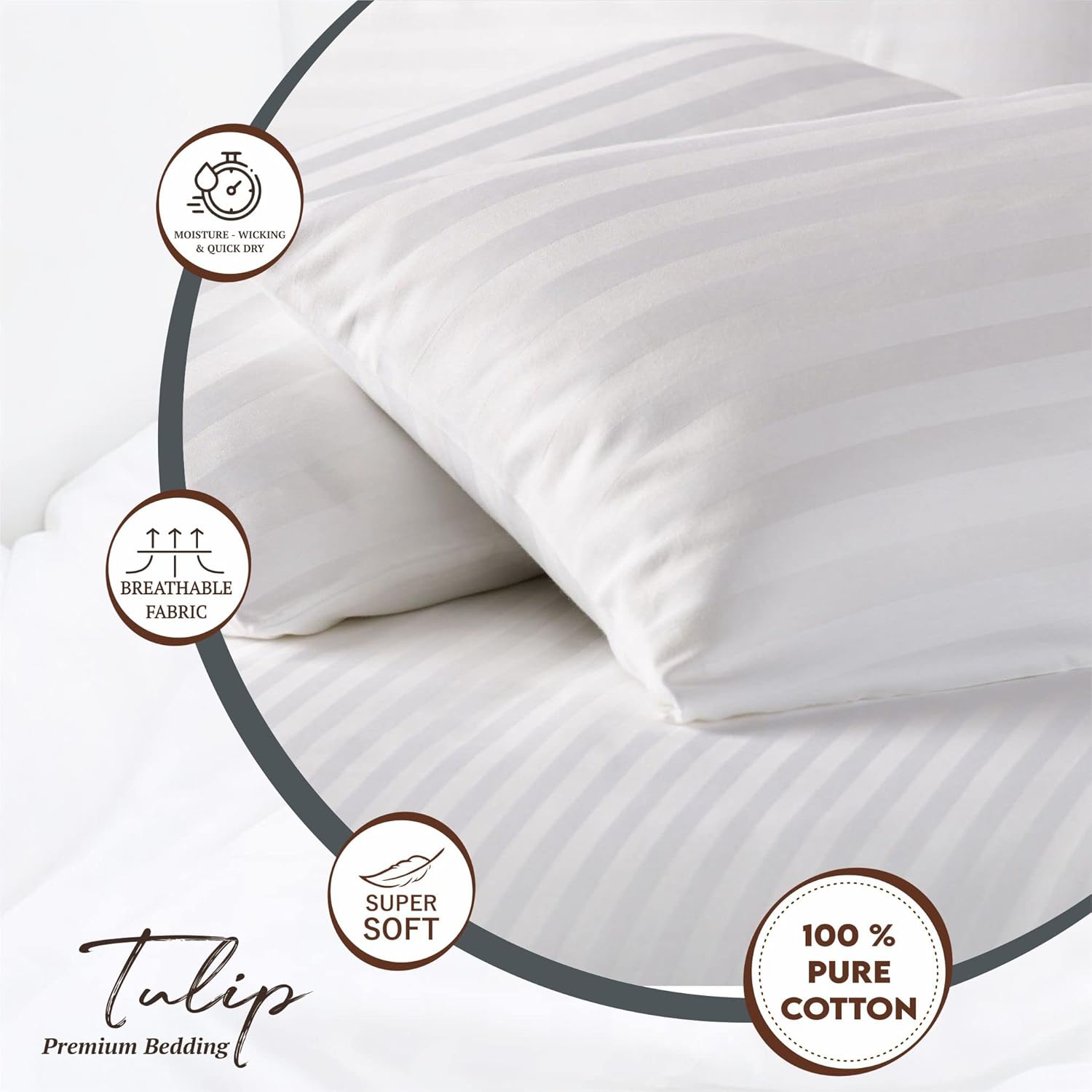 210 TC Pure Cotton Bag Type Satin Stripe Pillow Covers - White
