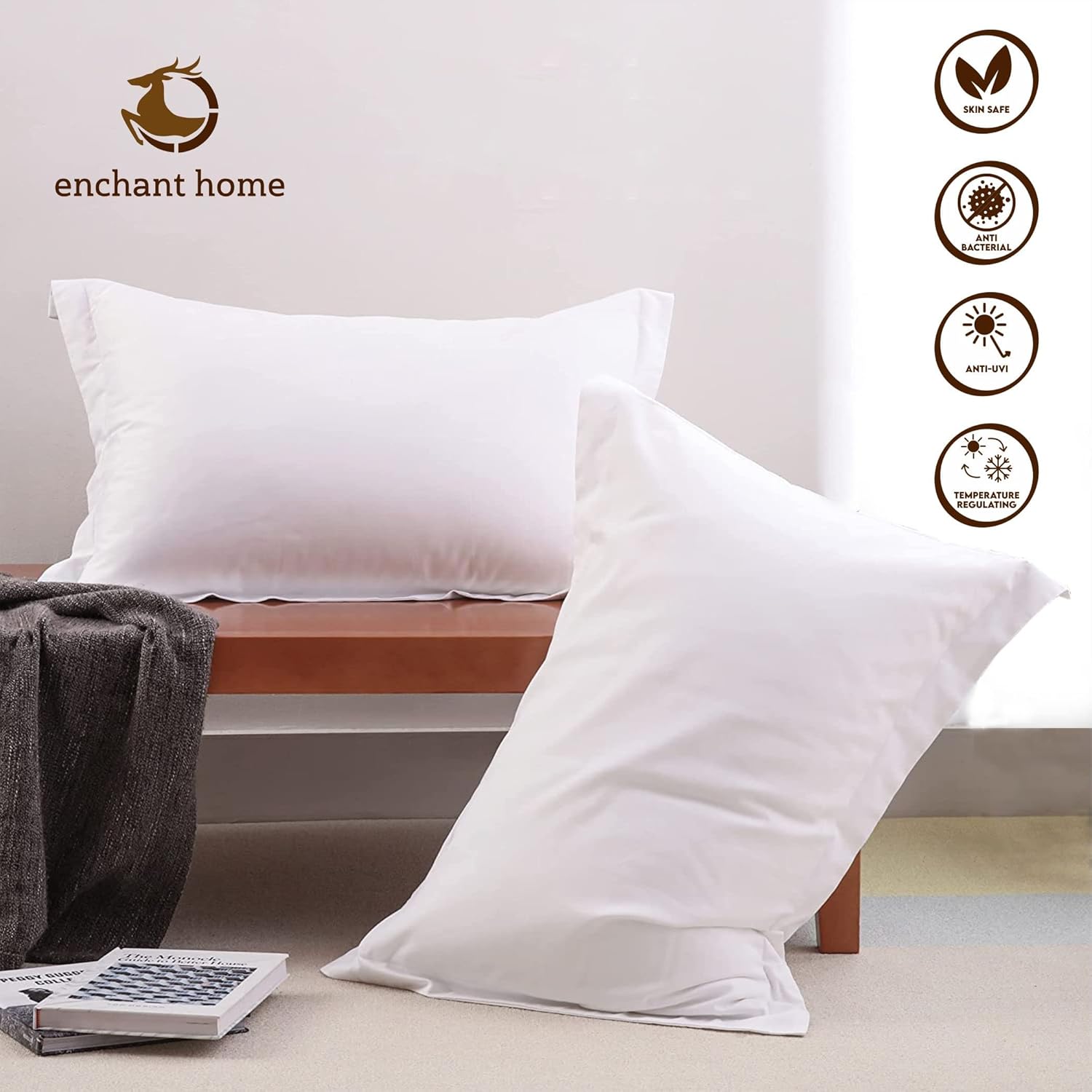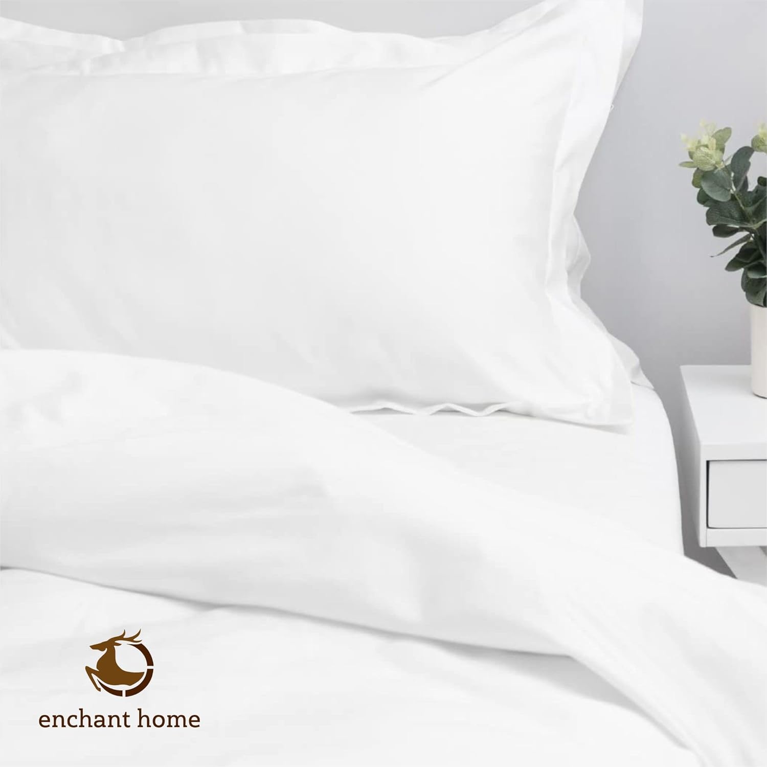 Crafted from 100% pure cotton, the Enchant Home plain percale pillow cover set offers a luxurious feel and superior breathability. The classic white color adds a touch of elegance to any bedroom decor. Transform your sleeping experience with these soft, comfortable pillow covers.