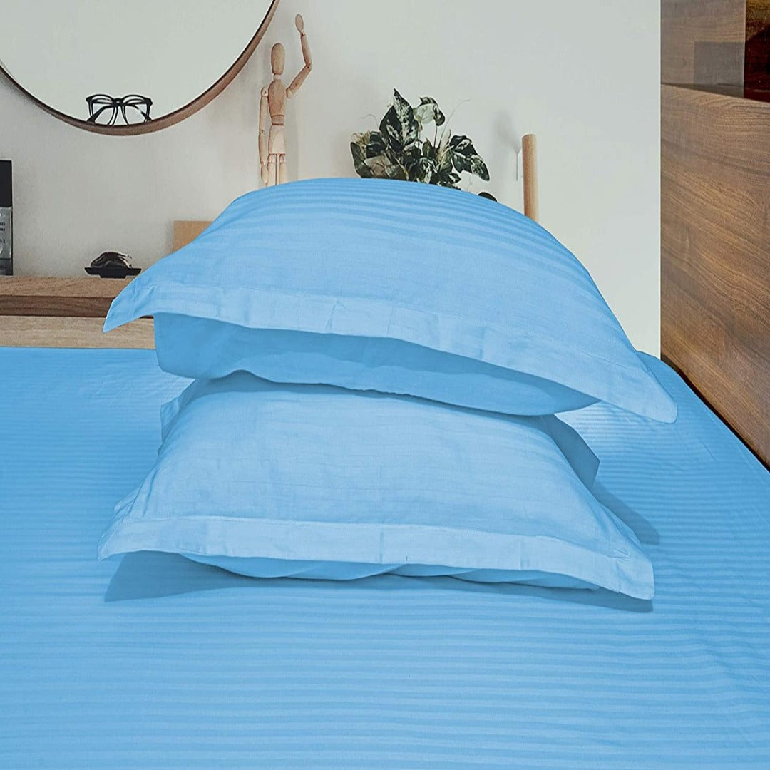 Pure Cotton Satin Stripe King Bedsheet - Sky Blue