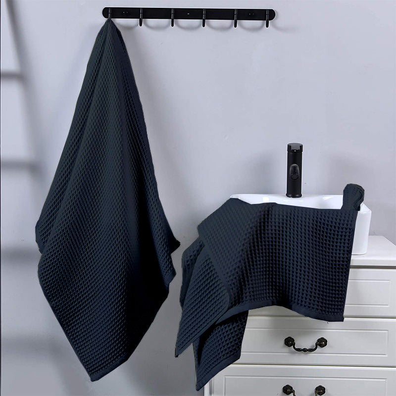 This plush waffle towel is the perfect addition to any bathroom. Its unique waffle weave texture provides superior absorbency to quickly dry hands and bodies after showering. Made of ultra-soft cotton, this towel feels luxurious against the skin. Its thick pile gently exfoliates the skin while absorbing water efficiently. The honeycomb-patterned surface creates more surface area for water retention than traditional towels. Its closed-cell construction prevents lint and ensures the towel maintains its fluffy appearance after washing. Available in various soothing colors, this waffle towel is a thoughtful gift for those seeking spa-like comfort at home.