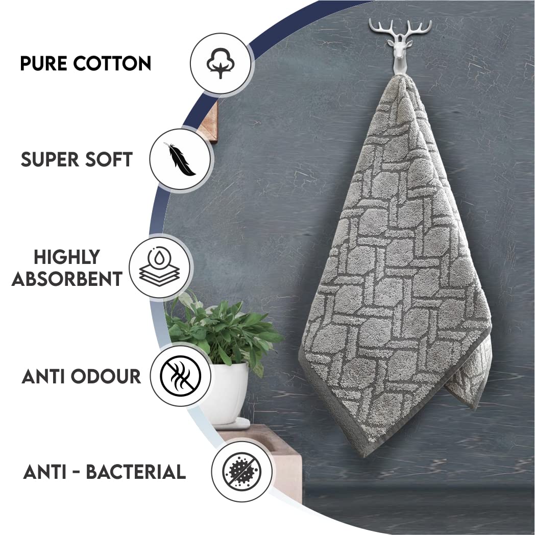 Pure Cotton Jacquard Hand Towels - Geometric silver