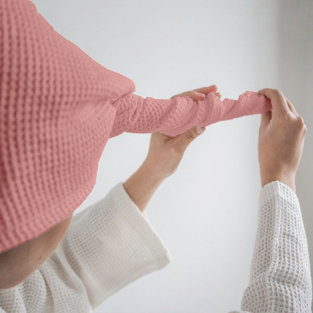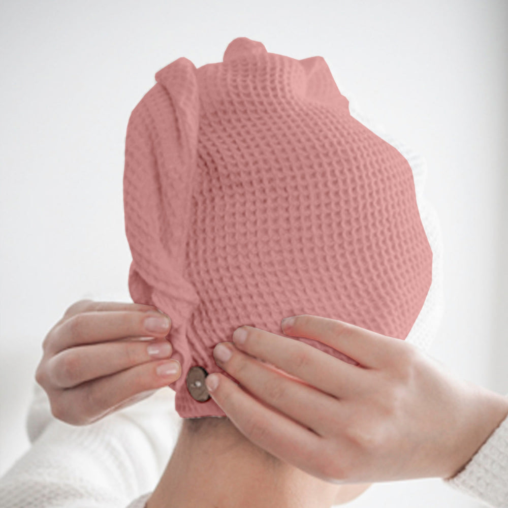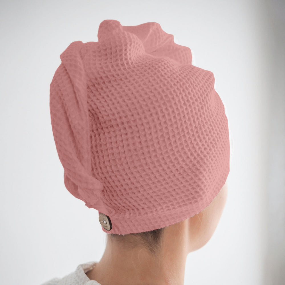 Pure Cotton Waffle Hair Wrap Towel - Peach