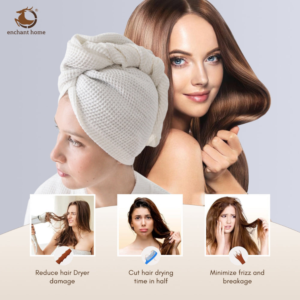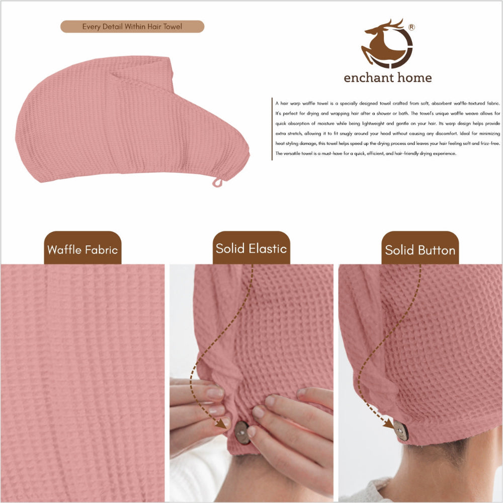 • WAFFLE WEAVE DESIGN: Premium cotton waffle-textured hair towel that provides superior moisture absorption and quick-drying performance