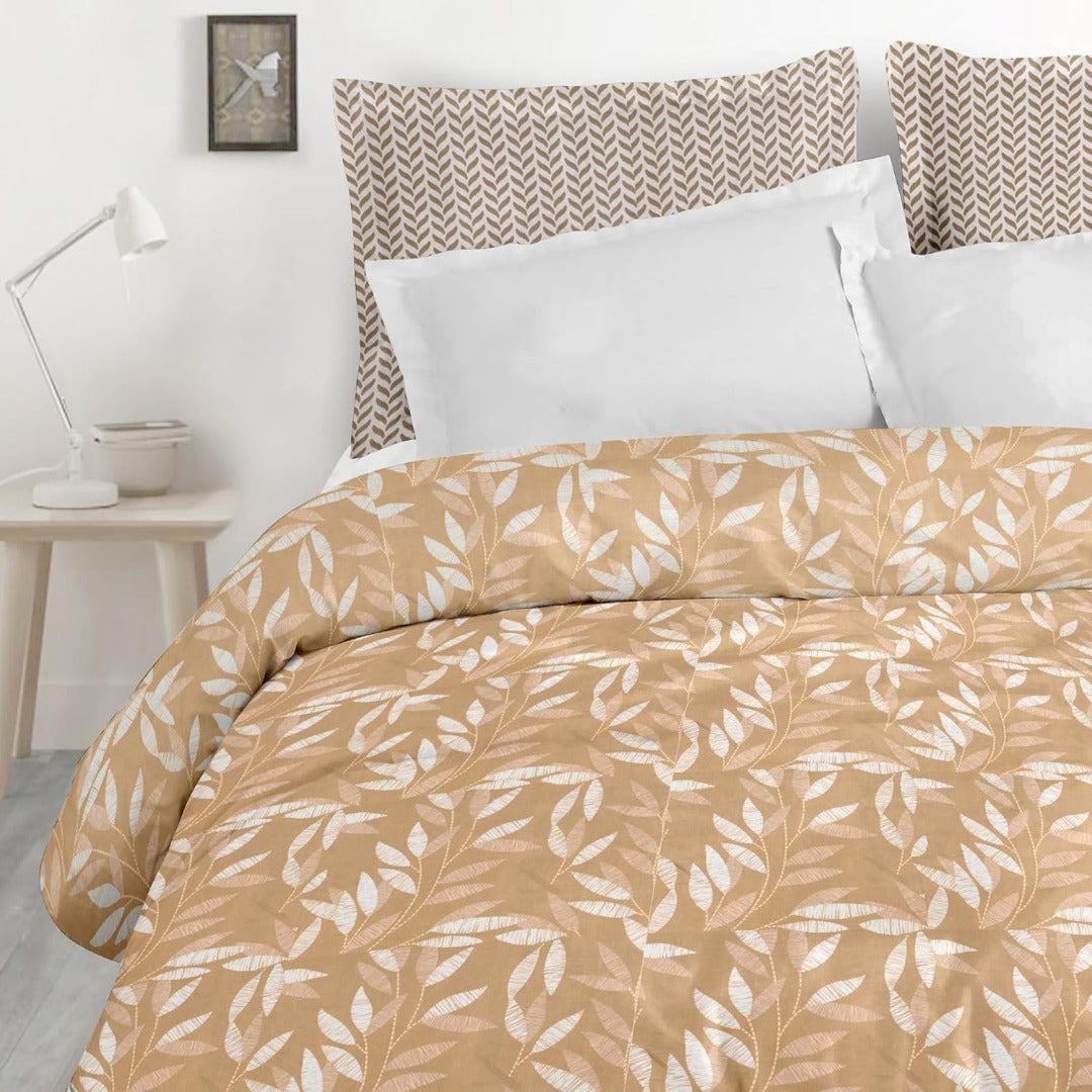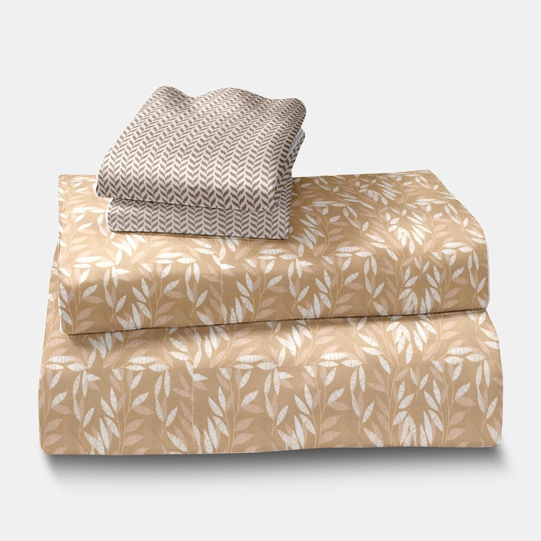 Blossom Glace Cotton Printed Double Bedsheet - Khaki