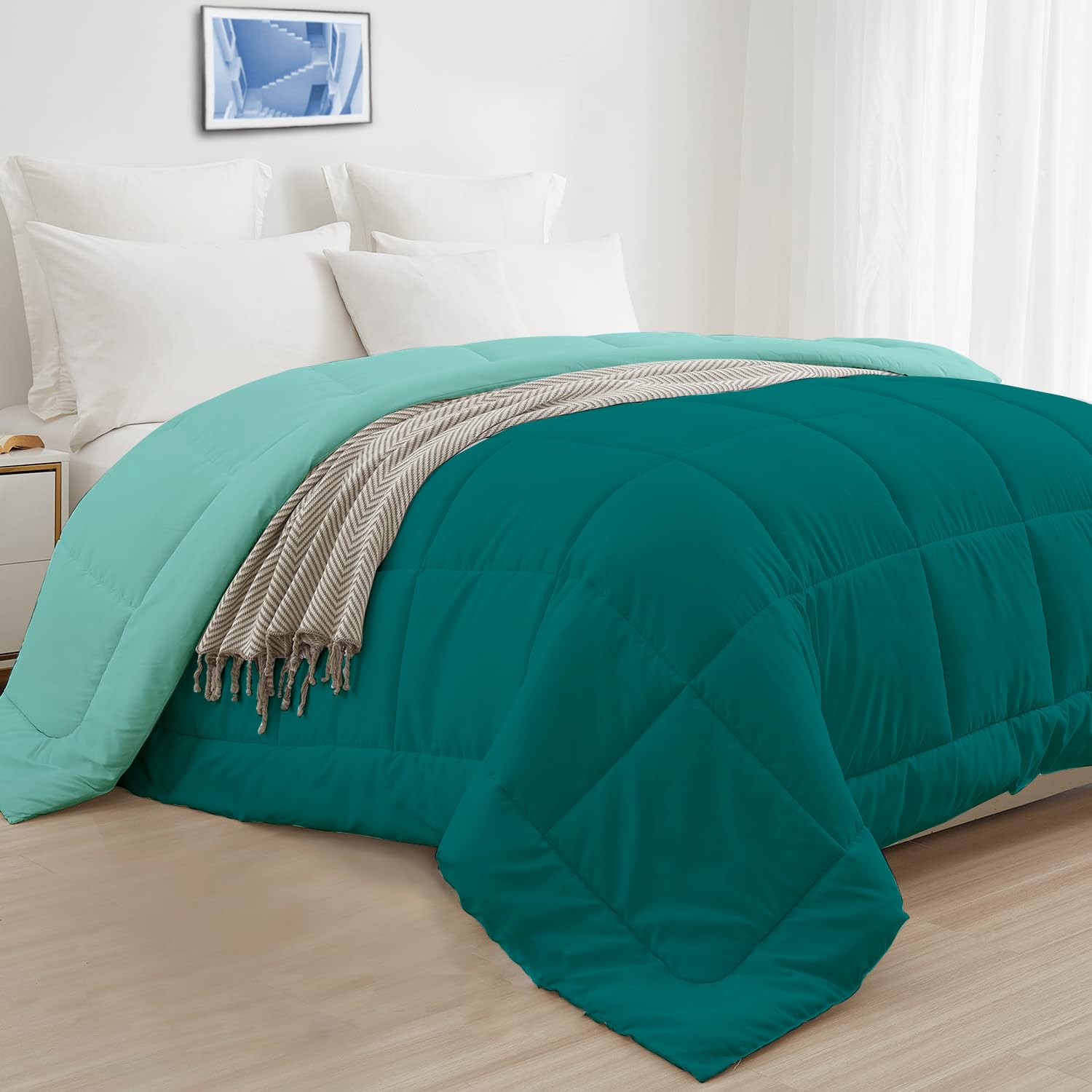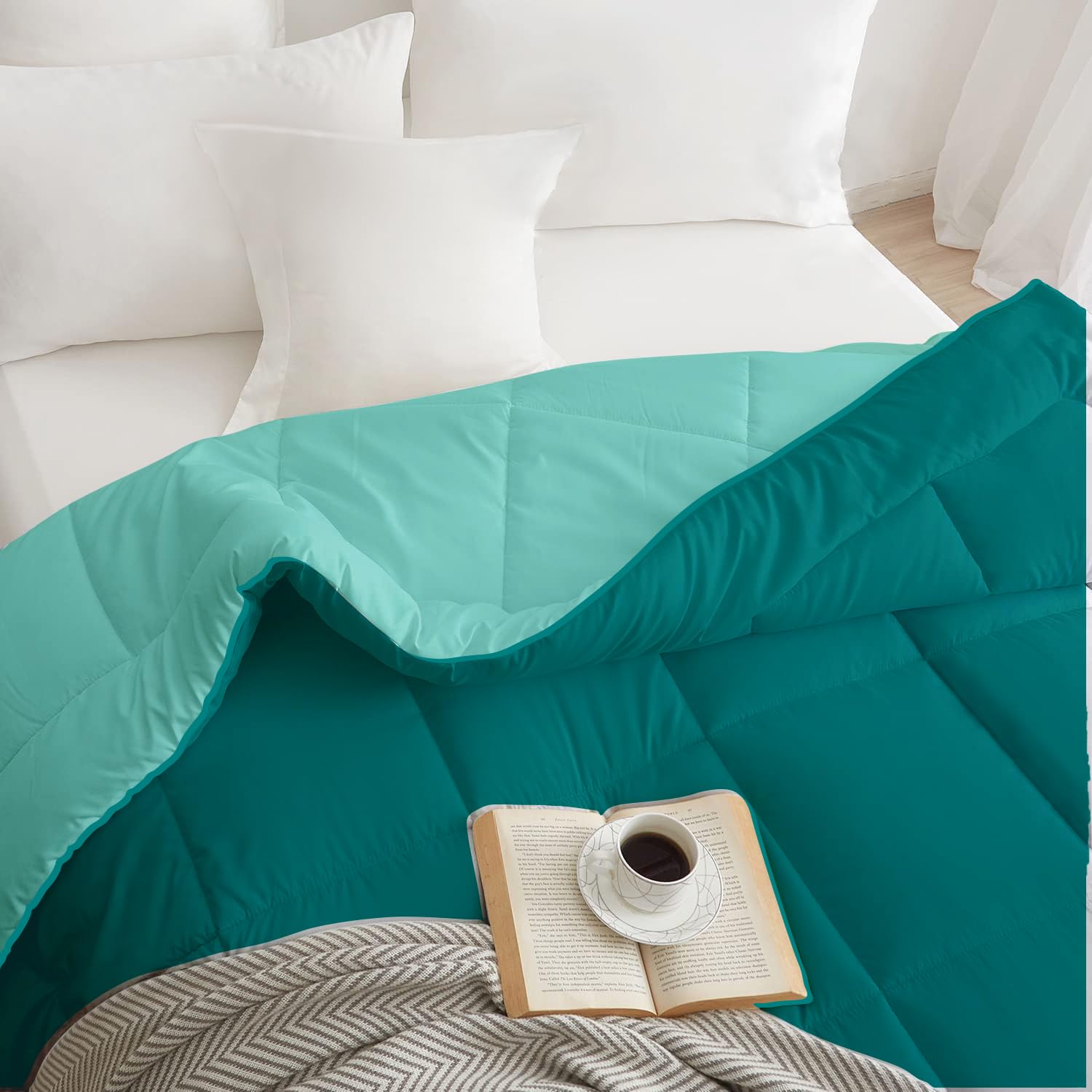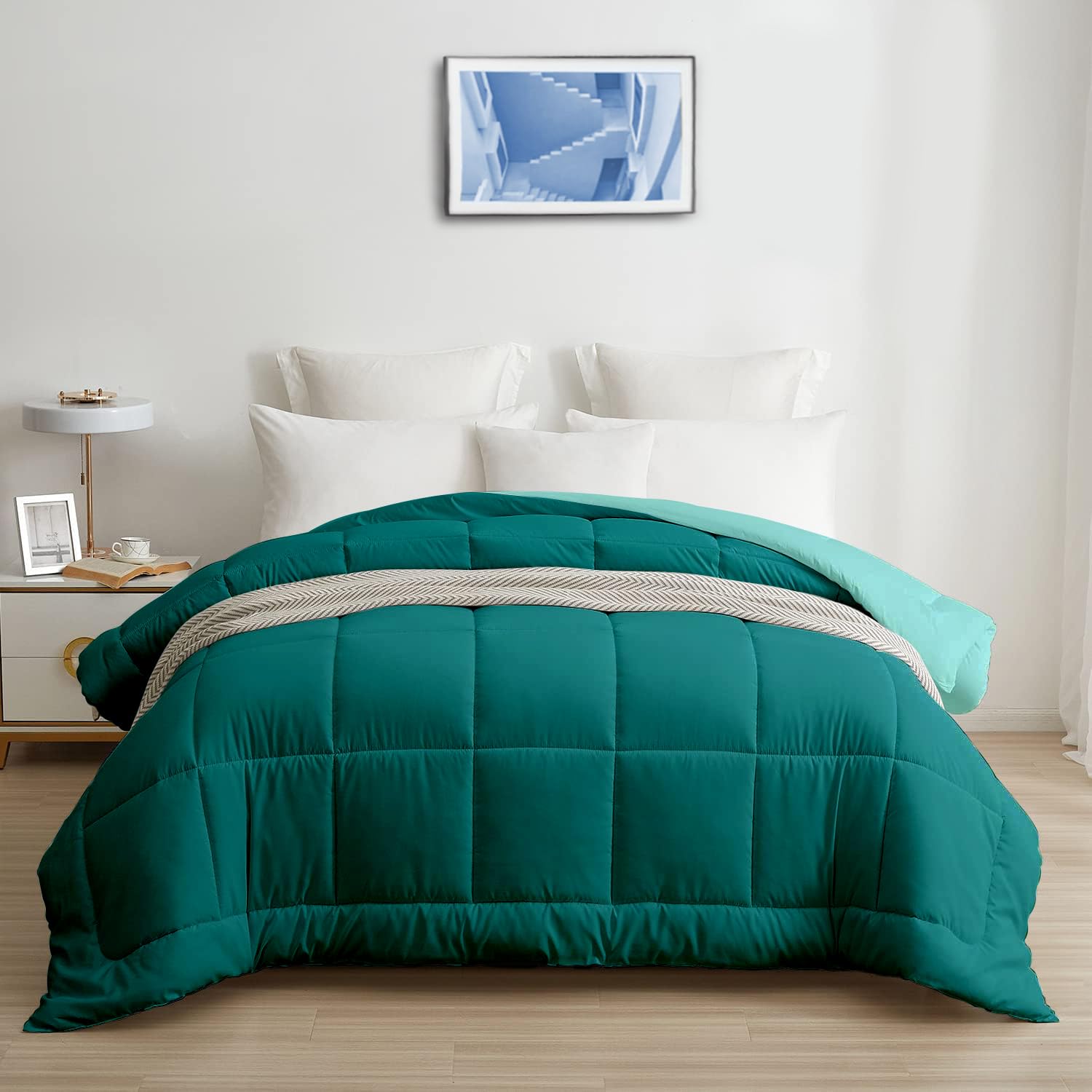 200 GSM Microfiber AC Double Comforter - Teal and Mint Green