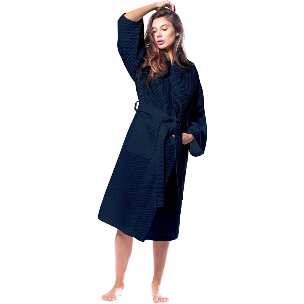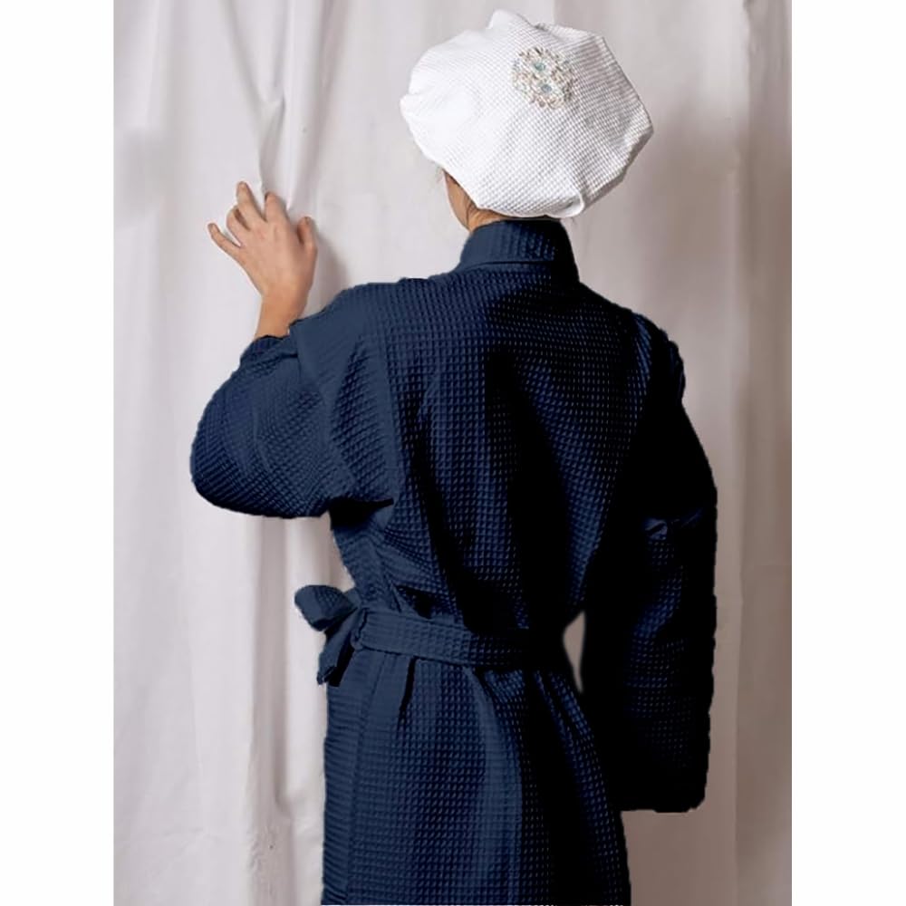 Pure Cotton Unisex Waffle Bath Robe - Navy Blue