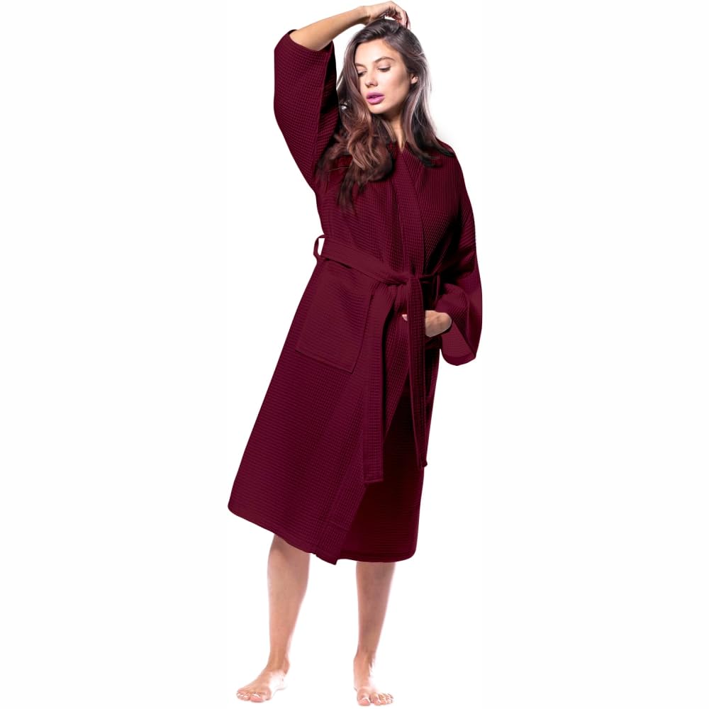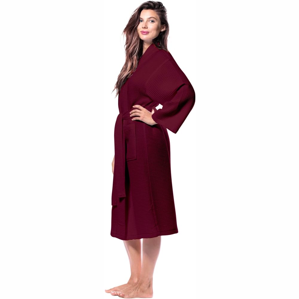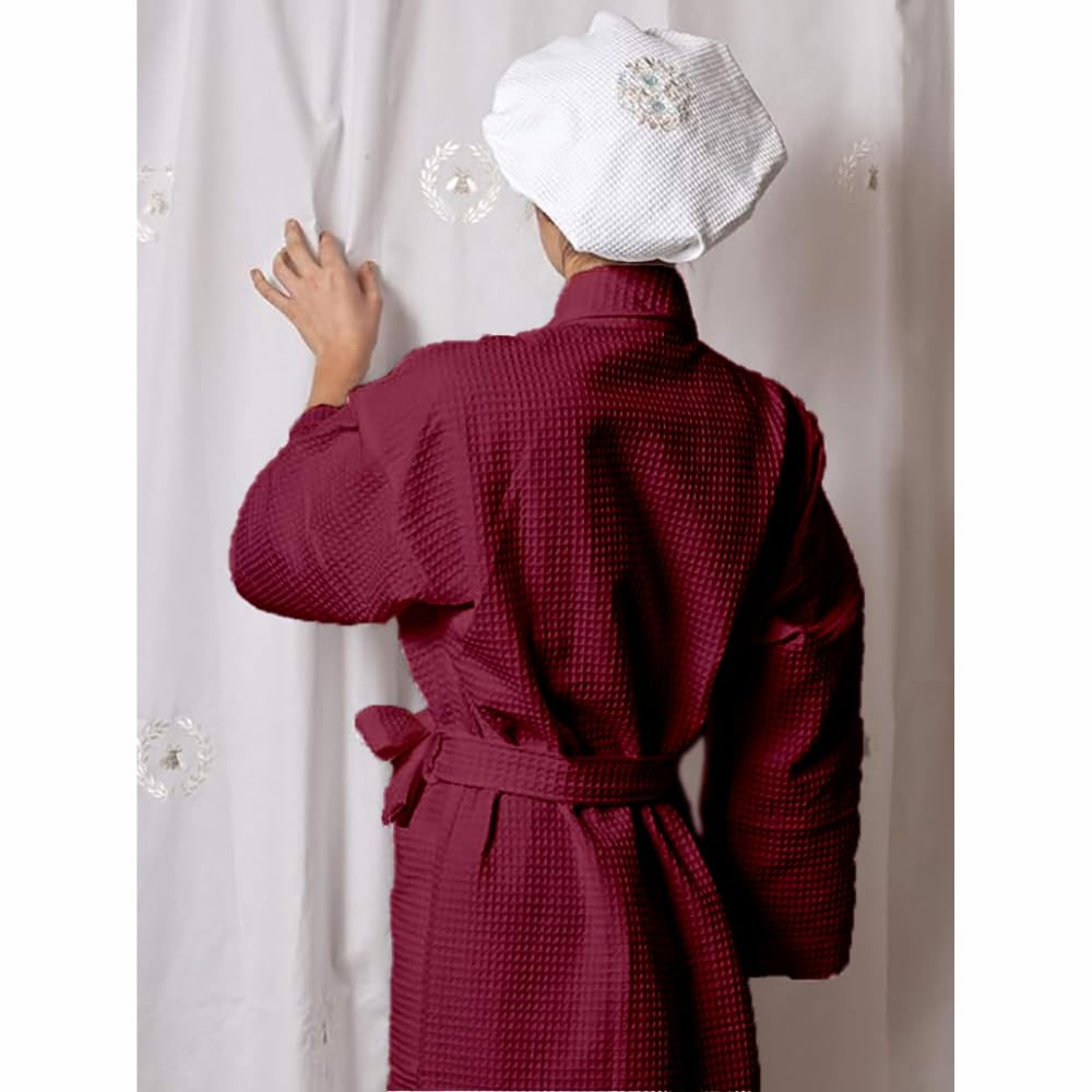 Pure Cotton Unisex Waffle Bath Robe - Maroon